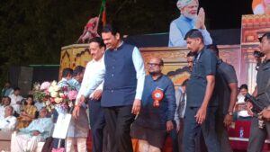 जामनेर येथे जलसंपदा मंत्री गिरीश महाजन यांनी आयोजित केलेल्या ‘नमो कुस्ती महा कुंभ दोन’ अंतर्गत देवाभाऊ केसरी आंतरराष्ट्रीय कुस्ती स्पर्धेचे उद्घाटन मुख्यमंत्री श्री. फडणवीस यांच्या हस्ते झाले. यावेळी ते बोलत होते. याप्रसंगी राज्याचे जलसंपदा मंत्री गिरीश महाजन, पाणीपुरवठा व स्वच्छता मंत्री तथा जळगाव जिल्ह्याचे पालकमंत्री गुलाबराव पाटील, केंद्रीय क्रीडा राज्यमंत्री रक्षाताई खडसे, खासदार स्मिताताई वाघ, आमदार सुरेश भोळे, मंगेश चव्हाण, अनिल पाटील, संजय कुटे, चंद्रकांत सोनवणे, चंद्रकांत पाटील, अमोल पाटील, अमोल जावळे, अनुपभैय्या अग्रवाल यांच्यासह कुस्तीगीर संघटनेचे रामदास तडस, जामनेरच्या नगराध्यक्ष साधनाताई महाजन आदी उपस्थित होते.