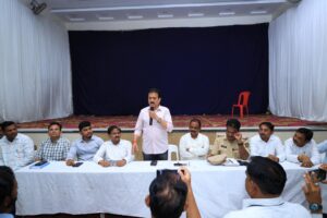 जामनेर-(प्रतिनिधी)- आज दिनांक २०/०९/२०२५वार शनिवार रोजी जामनेर शहरातील सर्व दुर्गाउत्सव मंडळा सोबत महत्वपूर्ण विषयावर मा.ना.गिरीशभाऊ महाजन यांच्या अध्यक्षतेखाली बैठक आयोजित करण्यात आली होती त्यात येणारा नवरात्र उत्सव आनंदात व उत्साहात पार पाडण्यासाठी सर्व मंडळाची जबाबदारी आहे. म्हणून सर्वांनी धार्मिक उत्सवाचे पावित्र ठेवा असे आवाहन राज्याचे आपत्ती व्यवस्थापन मंत्री नामदार गिरीश महाजन यांनी केले. जामनेर येथे सर्व दुर्गा उत्सव मंडळाच्या कार्यकर्त्यांच्या बैठकीत ते बोलत होते.